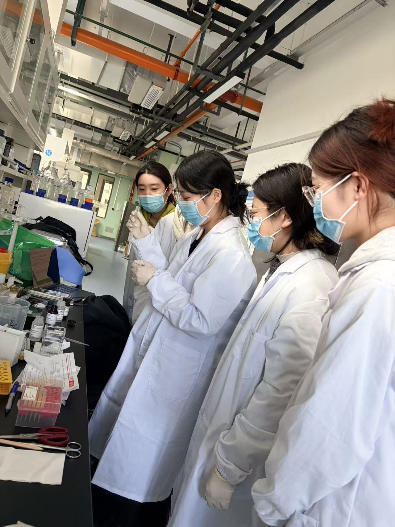 广岛大学应届博士毕业生余昕怡老师(现广州某医院博士后)来课题组带教硬组织切片法,跟大家一起切磋该特殊技术的奥秘。