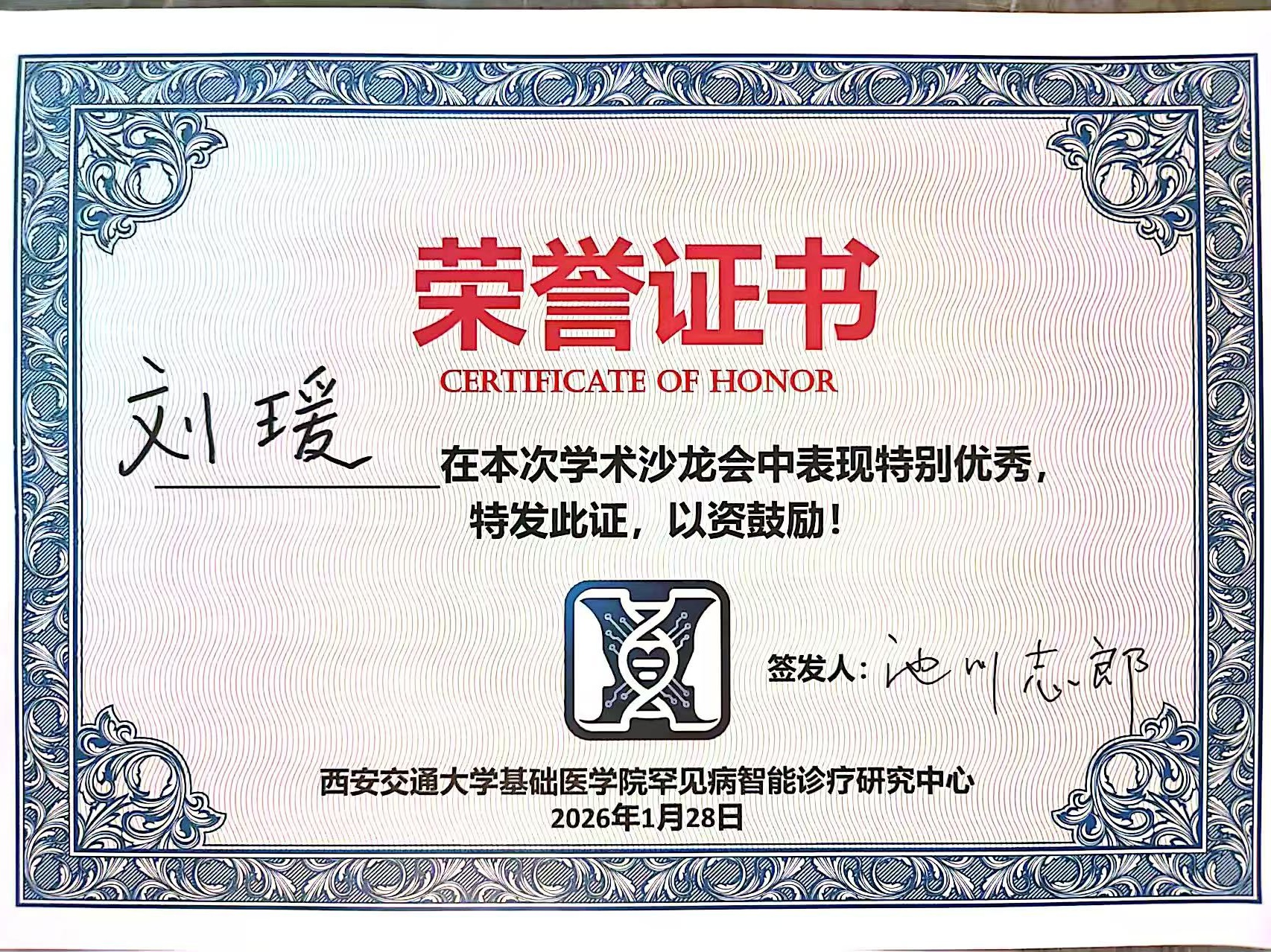 刘瑗博士后和刘婉琪同学获得年末学术沙龙会best讲者